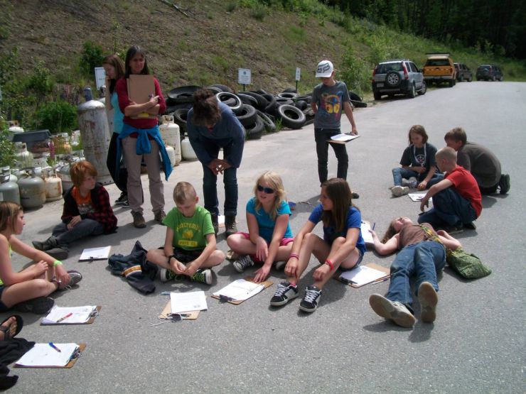 The grade 4/5/6 class made many discoveries on their field trip to the New Denver recycling center and the transfer station in Rosebury. Nicole Ward, RDCK Environmental Coordinator answered the students’ questions about what happens after we drop off our garbage and recycling at the facilities, and how waste is treated at the landfill. Students were surprised to learn that most of the glass in our region gets crushed and combined with sand to cover up garbage or to make roads in the landfill. We also found out that if recycling is not cleaned, it will get transported all the way to the recycling processors in Kelowna or Spokane, then sorted and thrown away! This is a waste of the sorters’ time and energy, and has a high environmental cost of transport trucks producing greenhouse gasses. Students wanted other people in the community to know these and many other important facts they learned, so are producing posters to be put up at the waste and recycling centers. They hope that this information will help their community be better recyclers.