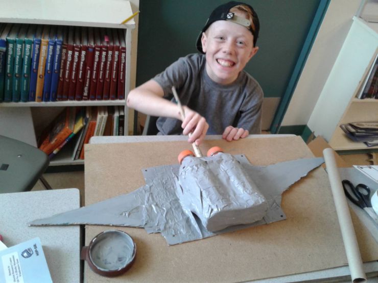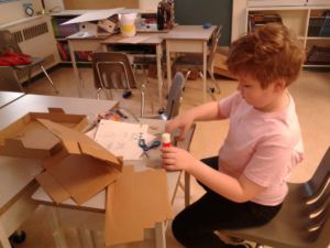 Final projects included a tiny model of Thomas the Tank Engine made out of cardboard, a fish mobile (related to the salmon lifecycle project in their science class), a rocket backpack for a pet, and several bird feeders – just to name a few!