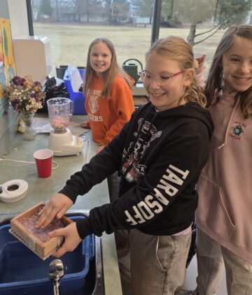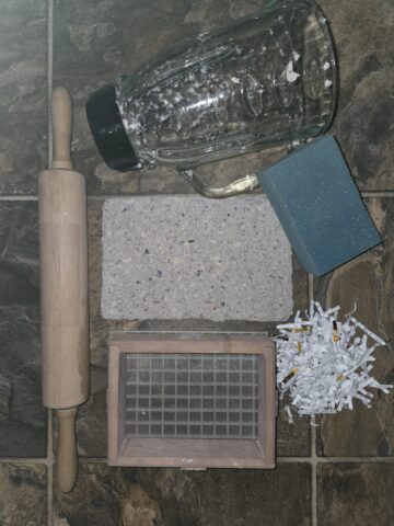 The Grade 5/6 class at Twin Rivers Elementary School in Castlegar had fun making paper this week in Beyond Recycling. This hands on activity really showcases the raw materials, trees and water, and their role in creating paper. The “mini paper making factories” were set up with all the equipment: water, shredded newspaper, coloured paper, a blender, pulp mold, rolling pins, and towels – lots of them! While the students were having fun moving through all the steps, we discussed how much water is used in making pulp, the building block of paper. For example, an estimated 10 L of water is required to make a single sheet of paper in todays modern paper process. Approximately 10,000 sheets of paper are made from one average pine tree, which seems like a lot, however, when we think about how much paper is used for one school/year (300,000 sheets) and how many public schools are in BC (1,586) we are looking at close to 50,000 trees that are harvested just for paper in schools!! This is why its so important that we recycle ALL paper in our schools. Less extraction of raw materials. Meanwhile, students continued to make pulp, place in the molds, and extract the water from the pulp by pressing and rolling. When finished, the paper is set to dry for a few days and then each students unique piece of paper will be kept until the spring. Our idea is to have the students make an Earth Day pledge and write it on their paper and showcase it to the rest of the school in an art installation. Great job Mme Russel’s class!